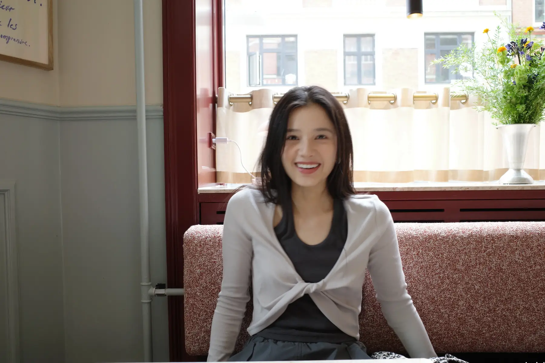 張婧儀灰色紗裙造型飄渺靈巧 漫步小巷似快樂精靈
