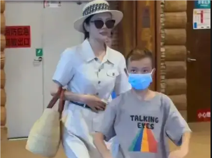楊樂樂帶兒子出門游玩 9歲小沐沐眉眼神似汪涵