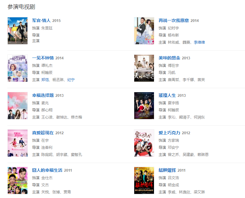 2013年,在電視劇《像火花像蝴蝶》中飾演唐立平,該劇榮獲第十屆電視制片業(yè)十佳頒獎禮“十佳優(yōu)秀電視劇”獎。