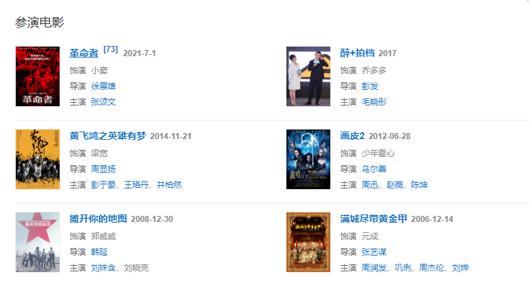 2006年,因拍攝張藝謀執(zhí)導(dǎo)的古裝宮廷情感電影《滿城盡帶黃金甲》而步入演藝圈 。
