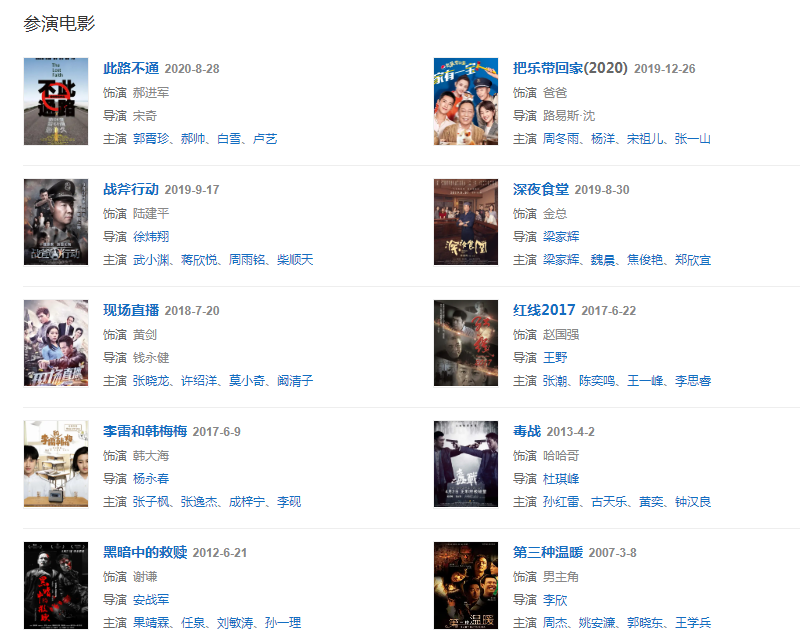 代表作品:蝸居、全家福、我愛杰西卡、黑暗中的救贖、同在屋檐下