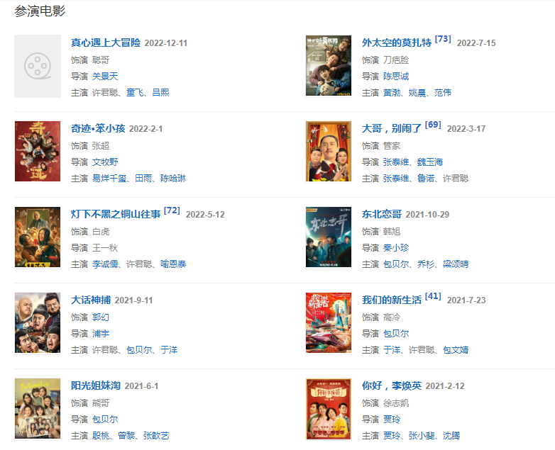 2021211日,參加《2021年中央廣播電視總臺春節(jié)聯(lián)歡晚會》,與賈玲、張小斐等表演小品《一波三折》;723日,主演的網(wǎng)絡電影《我們的新生活》上映。