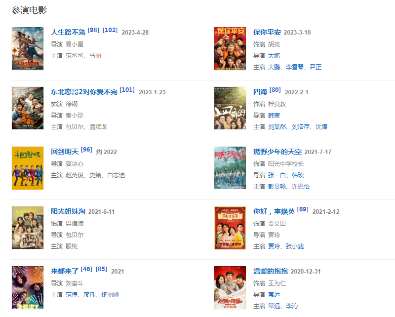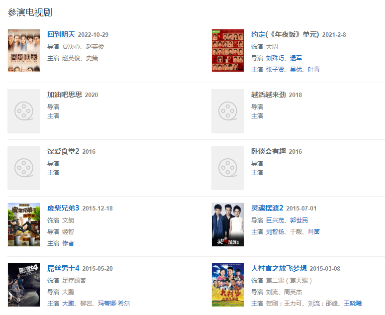 2021年,參演電影《你好,李煥英》,在片中飾演賈玲父親賈文田。2021年出演韓寒導演作品《四?!罚n2022年大年初一。
