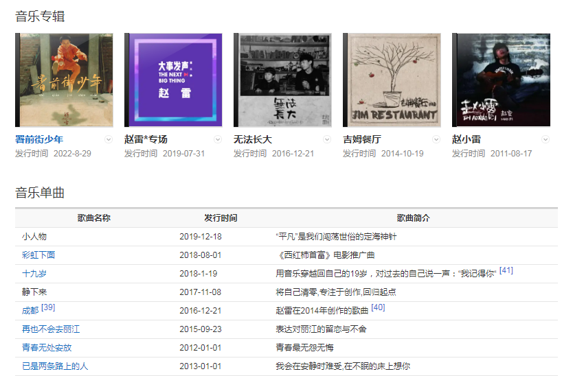 2011年,推出首張個(gè)人音樂專輯《趙小雷》。