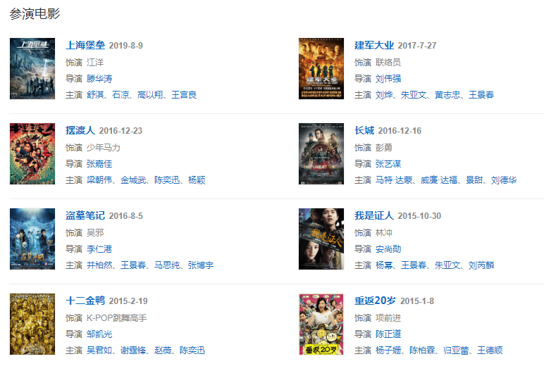 2016年,主演的電影《盜墓筆記》《長城》上映 。同年,登上“中國90后10大影響力人物”榜首,并以2.7億財(cái)富居2016“中國90后富豪榜”第五位 。