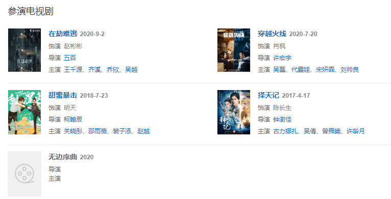2020年,擔(dān)任騰訊視頻綜藝節(jié)目《創(chuàng)造營2020》教練成員;9月2日,主演的輕科幻懸疑劇《在劫難逃》播出 ;11月,擔(dān)任綜藝節(jié)目《哈哈哈哈哈》旅行社成員。
