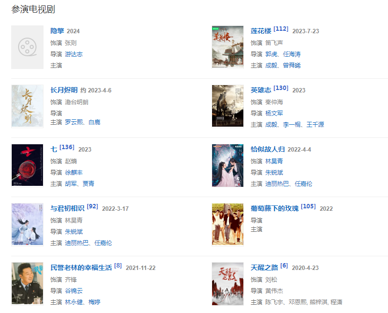 2022年,主演的古裝神話劇《與君初相識(shí)》和古代傳奇劇《恰似故人歸》相繼播出。6月26日。領(lǐng)銜主演古裝武俠劇《蓮花樓》。同年,領(lǐng)銜主演都市犯罪懸疑劇《七》。