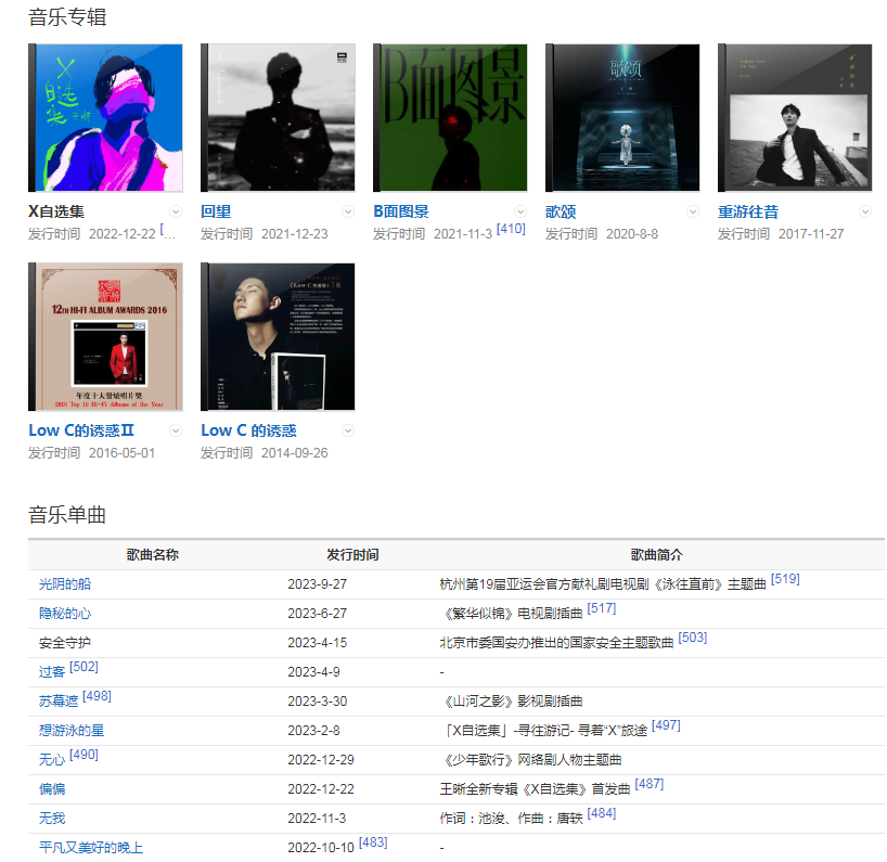 2022年12月,發(fā)行第6張專輯《X自選集》 。