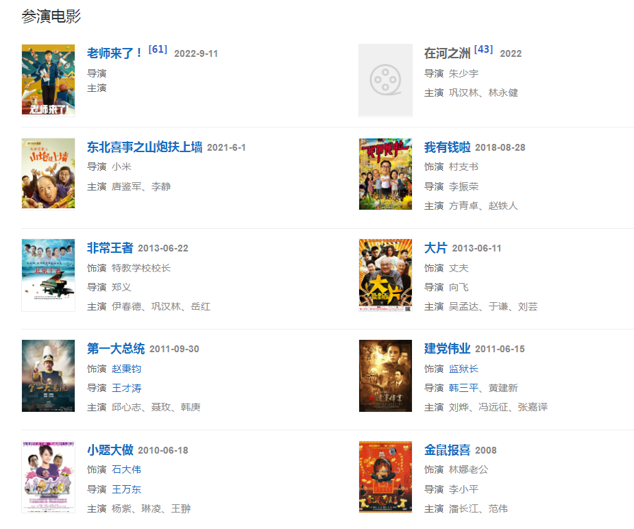 2021年6月1日,主演的喜劇電影《東北喜事之山炮扶上墻》在騰訊視頻獨家播出 ;10月9日,參演的電影《爸爸媽媽別離開我》在上海舉行開機新聞發(fā)布會 ;10月21日,參演的電視劇《突圍》播出。