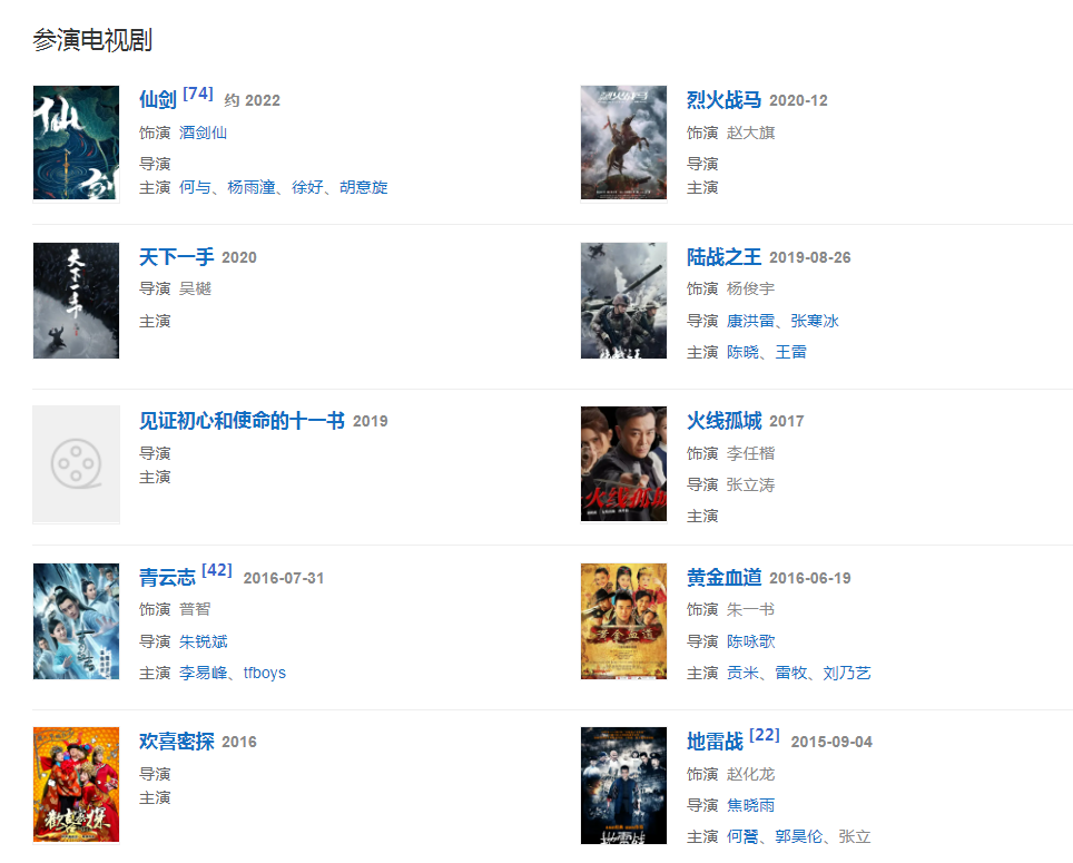 代表作品:地下交通站、西游記、浪子燕青、連城訣、寒戰(zhàn)2、建軍大業(yè)、狂獸、英雄本色4、葉問4:完結(jié)篇