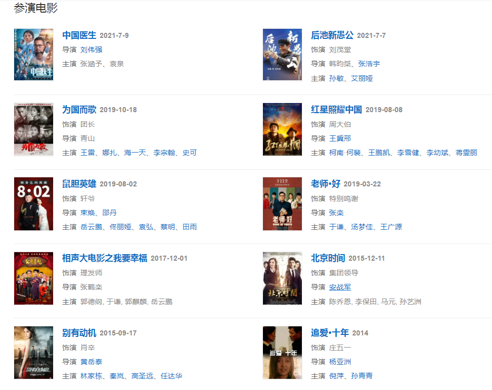 2021 年2月18日,參演的都市情感劇《甜蜜》播出 ;3月3日,家庭生活輕喜劇《生活萬(wàn)歲》開(kāi)播;6月13日,參演電視劇《百煉成鋼》;7月1日,參加的慶祝中國(guó)共產(chǎn)黨成立100周年文藝演出《偉大征程》播出,與吳剛、歐豪、李易峰、郭曉冬合作表演《激情歲月》;7月9日,參演《中國(guó)醫(yī)生》播出; 7月20日,參演的電視劇《烽火抗大》播出; 10月1日,參演的話劇《直播開(kāi)國(guó)大典》在國(guó)家大劇院戲劇場(chǎng)首演,他在劇中飾演老夏;10月8日,主演的近代革命劇《霞光》在央視八套播出;參演電視劇《理想照耀中國(guó)》。
