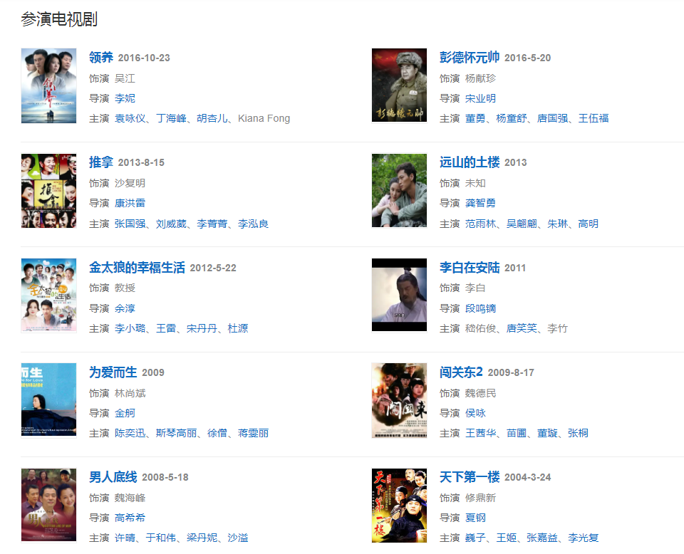 代表作品:《英雄無(wú)悔》《光榮之旅》《公安局長(zhǎng)》