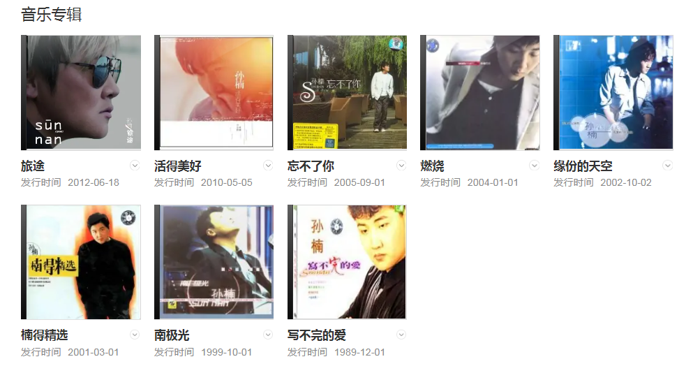 2000年推出專輯《南極光》。2001年發(fā)行第一張個(gè)人精選輯《楠得精選》。