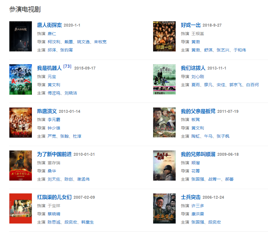 代表作品:士兵突擊、我的兄弟叫順溜、人在囧途、唐人街探案、盲井、道士下山、人再囧途之泰囧、Hello!樹(shù)先生、一個(gè)人的武林