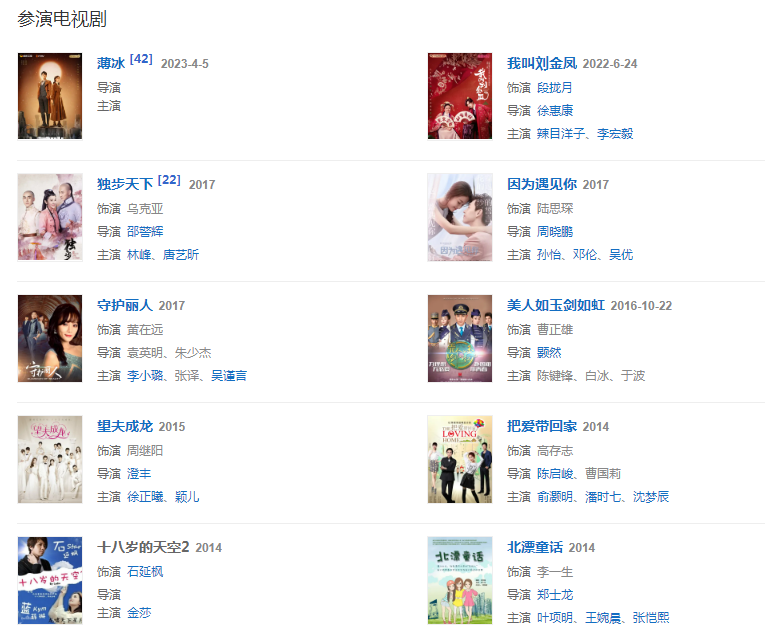 代表作品:十八歲的天空、紅色石頭、烽火佳人、因為遇見你、守護麗人、出租女友、起跑天堂、簡單的一天