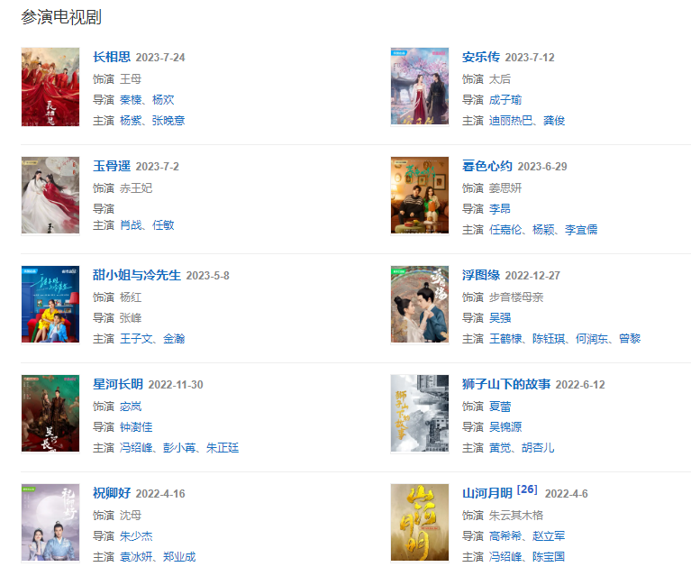 2022313日,參演的電影《冰雪狙擊》上映  46日,參演的古裝歷史劇《山河月明》播出;416日,參演的古裝愛情劇《祝卿好》播出,在劇中飾演沈宴的母親。