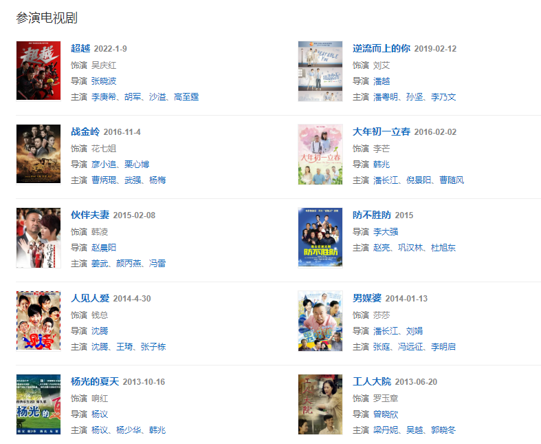 代表作品:夏洛特?zé)馈⑿咝叩蔫F拳、喵星人、一念天堂、來電狂響、東北往事之破馬張飛、逆流而上的你、測謊人、這個(gè)殺手不太冷靜