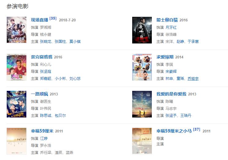 代表作品:我愛的是你愛我、鐵血紅安、杉杉來了、女醫(yī)·明妃傳