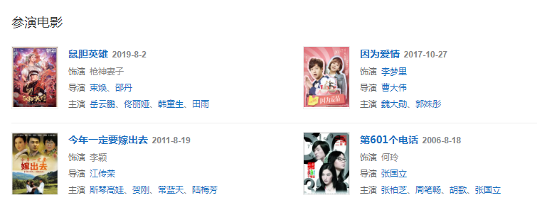 代表作品:神話、金枝玉葉、寶貝、離婚律師、敢愛、幻城、周末父母、小丈夫、沙海