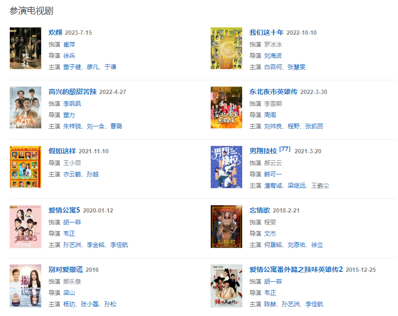 代表作品:愛(ài)情公寓、愛(ài)情自有天意、愛(ài)情悠悠藥草香、鹿鼎記、你是我的姐妹、周日戀曲、LOURA
