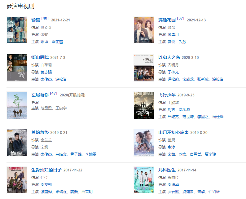 202178日,與秦俊杰主演的電視劇《衡山醫(yī)院》開播 ;1213日,參演的浪漫愛情懸疑劇《沉睡花園》播出 ;參演電視劇《輸贏》播出。