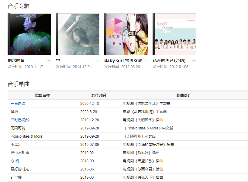 2020年,發(fā)行音樂專輯《怕水的魚》 ,擔(dān)任實(shí)境旅行美食慢綜藝節(jié)目《蜜食記第六季》常駐嘉賓。