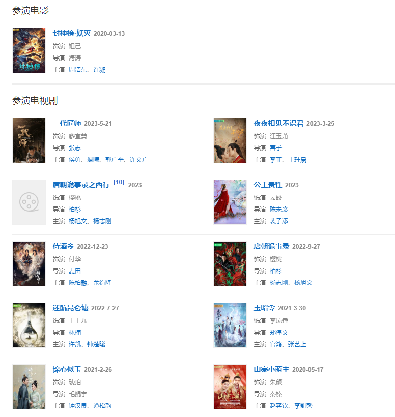 2022年,主演的古裝探案劇《唐朝詭事錄》播出。
