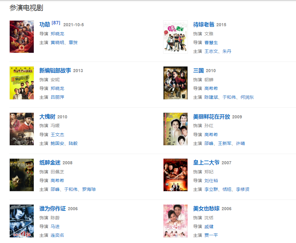 代表作品:粉紅女郎、雙響炮、天龍八部、李衛(wèi)當(dāng)官、我愛(ài)河?xùn)|獅、紙醉金迷、三國(guó)
