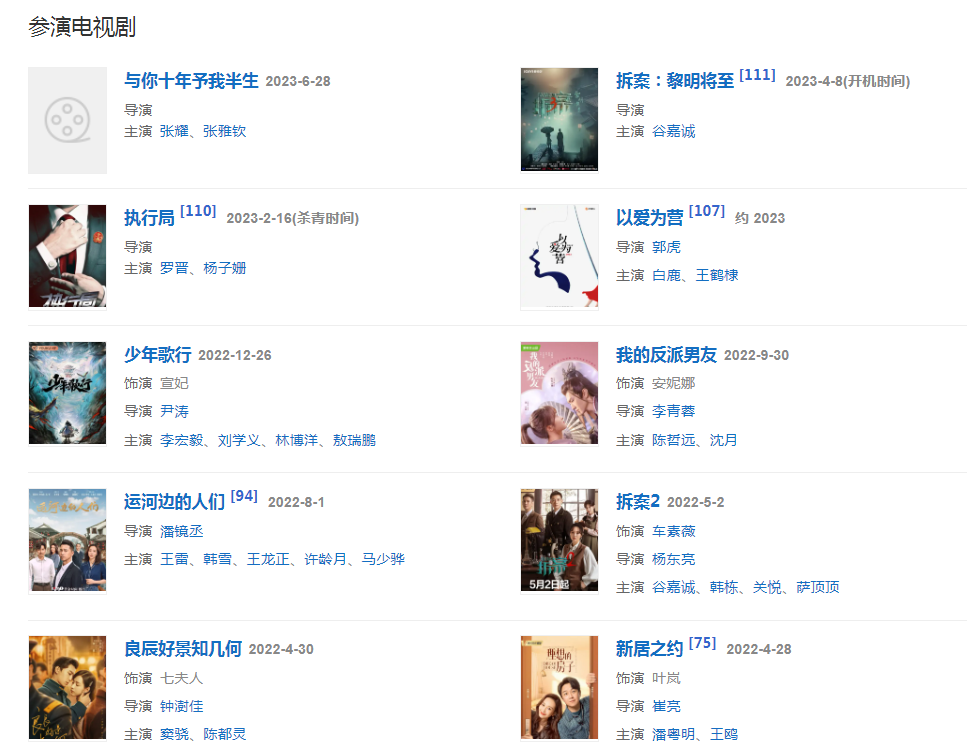 2022年3月,主演由潘鏡丞執(zhí)導(dǎo)的電視劇《大運(yùn)之河》;4月28日,特別出演的當(dāng)代都市劇《新居之約》播出。4月30日,出演的年代情感劇《良辰好景知幾何》在浙江衛(wèi)視、優(yōu)酷視頻播出 。5月2日,主演的偵破奇案劇《拆案2》播出,在劇中飾演法醫(yī)車素薇 。6月,參加綜藝節(jié)目《五十公里桃花塢第二季》。