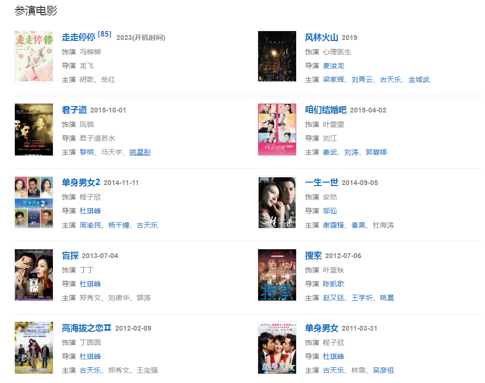 代表作品:咱們結(jié)婚吧、倚天屠龍記、青紅、十七歲的單車、南京!南京!、單身男女、搜索、一生一世