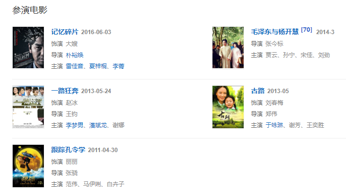 代表作品:金粉世家、京華煙云、老大的幸福、火線三兄弟、大連故事、風(fēng)雨、楚喬傳 、