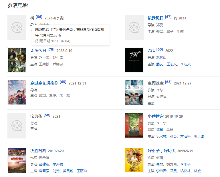 2022年4月7日,參演的北京師范大學(xué)形象藝術(shù)片《無(wú)負(fù)今日》正式啟動(dòng)。