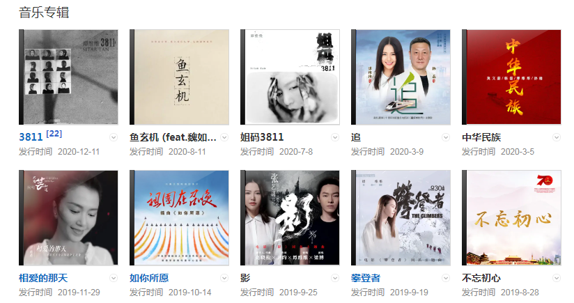 2020年2月,演唱文藝界抗擊疫情主題MV《堅(jiān)信愛(ài)會(huì)贏》;10月21日,獻(xiàn)唱電影《金剛川》主題曲《英雄贊歌》 ;12月11日,發(fā)行專輯《3811》。