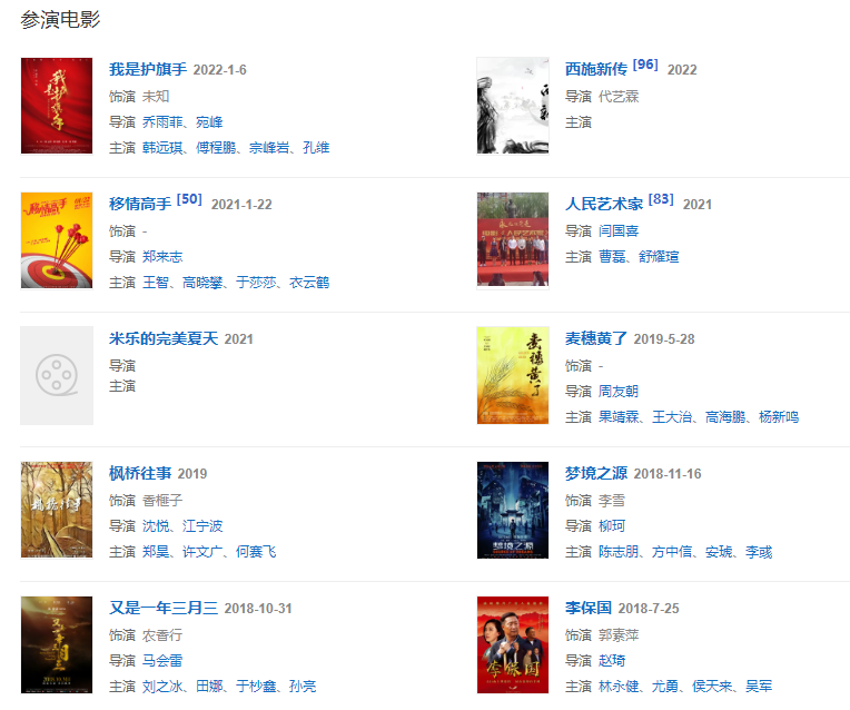 2020年,領(lǐng)銜主演電視連續(xù)劇《不負人民》。202246日,搭檔王洛勇、李幼斌領(lǐng)銜主演的大型現(xiàn)代林業(yè)建設(shè)題材電視劇《青山不墨》在央視一套播出  。