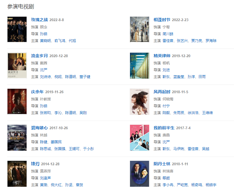 2021年主演電影《中國醫(yī)生》,獲得東京電影節(jié)金鶴獎最佳女主角。2022年主演電視劇《相逢時(shí)節(jié)》。