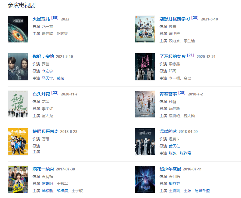代表作品:還珠格格、人證、風吹云動星不動、重慶諜戰(zhàn)、粉紅女郎、紅色康乃馨、人間正道是滄桑、超少年密碼、你好,安怡