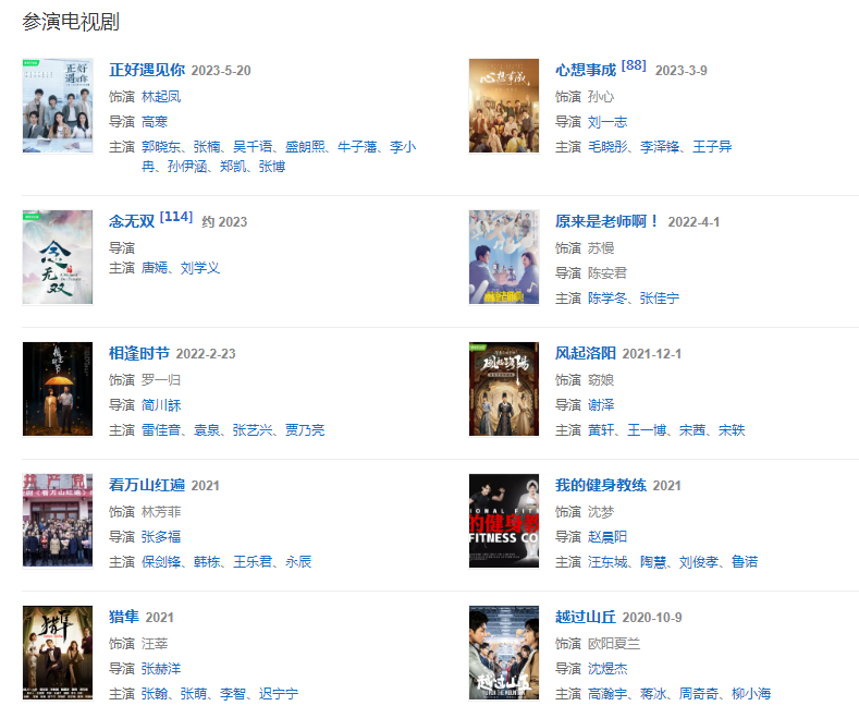 2022223日,主演的都市情感劇《相逢時(shí)節(jié)》播出;41日,與陳學(xué)冬、張佳寧等領(lǐng)銜主演的都市校園輕喜劇《原來是老師??!》在愛奇藝播出,520日,張儷確定參加的勵(lì)志成長音樂競演節(jié)目《乘風(fēng)破浪第三季》播出。