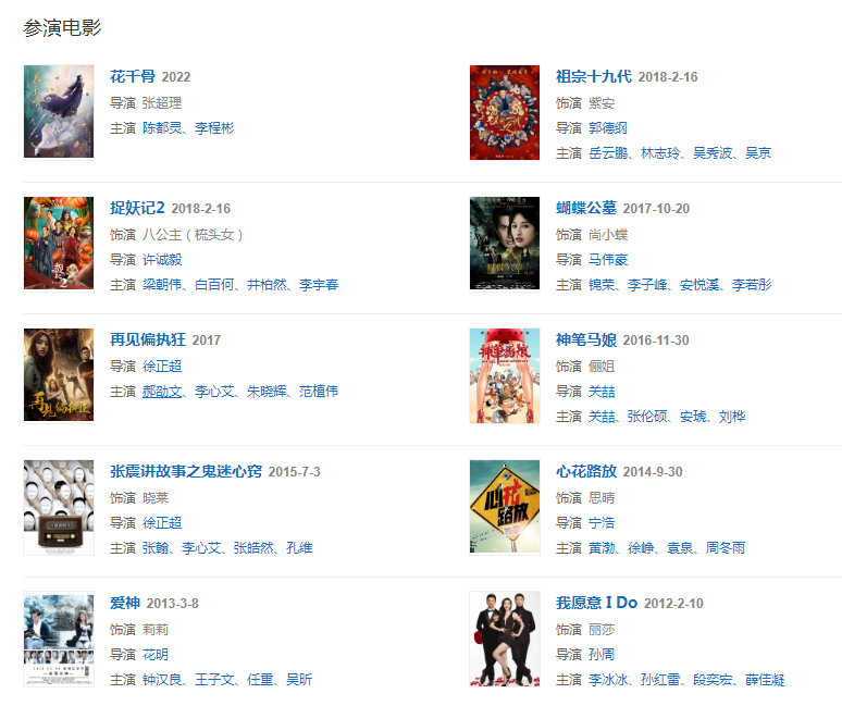 20128月,主演的都市勵(lì)志劇《北京青年》播出  20149月,參演的喜劇片《心花路放》上映,并憑借此片獲得金票根演繹傳神大獎。
