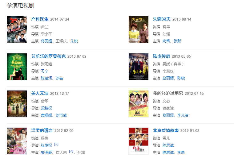 代表作品:美人無(wú)淚、我的經(jīng)濟(jì)適用男、北京愛情故事