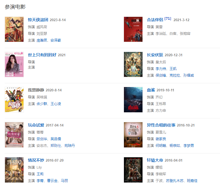 20203月,與李治廷、白客主演電影《合法伴侶》定檔313日。