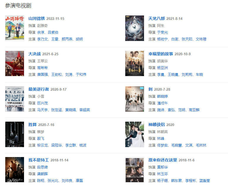 20197月,主演民國諜戰(zhàn)劇《勝算》;8月,主演都市情感劇《幸福里的春天》。