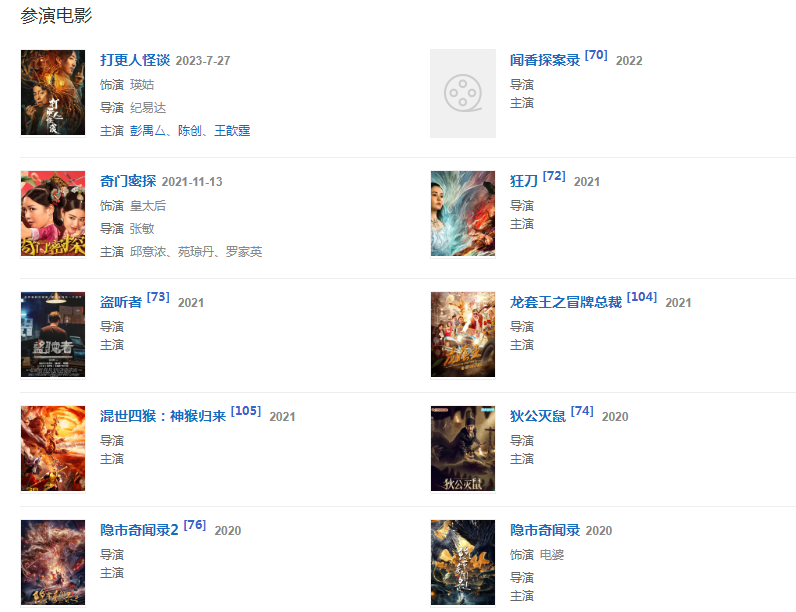 2021年2月1日,出演的動(dòng)作奇幻愛情電影《混世四猴:神猴歸來》定檔2月6日播出。