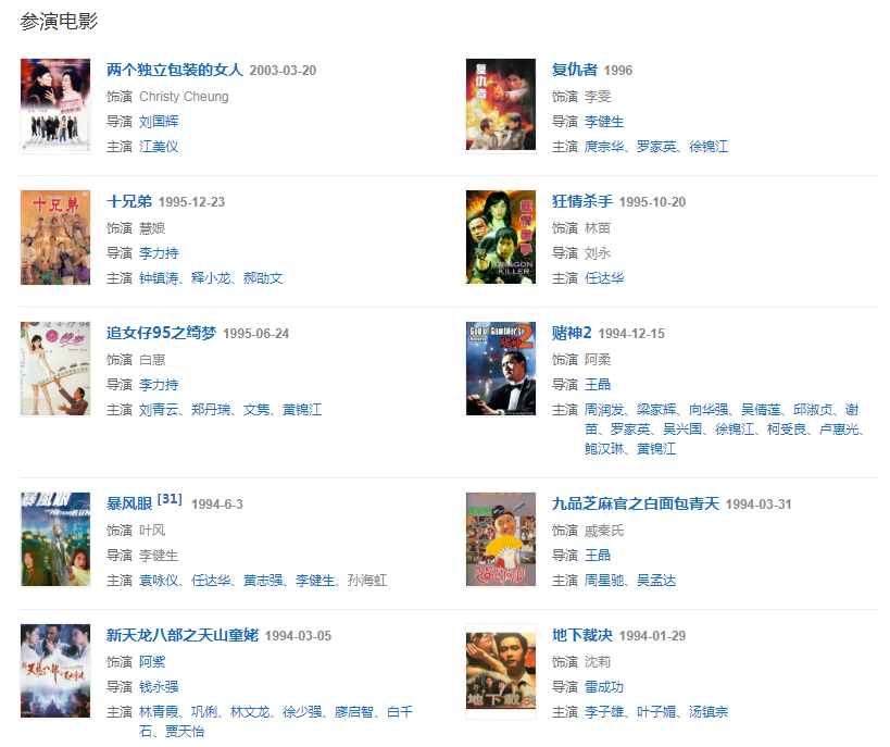 1992年,主演喜劇電影《武狀元蘇乞兒》。同年,被香港娛樂雜志評選“四大尤物”第2名。