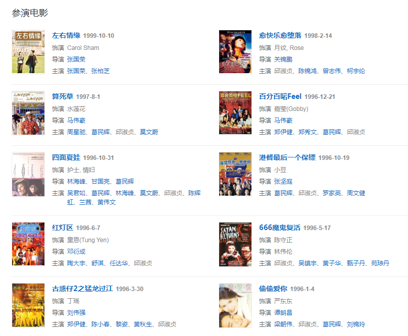 代表作品:最佳損友、赤裸羔羊、不道德的禮物、愈快樂(lè)愈墮落、倚天屠龍記之魔教教主