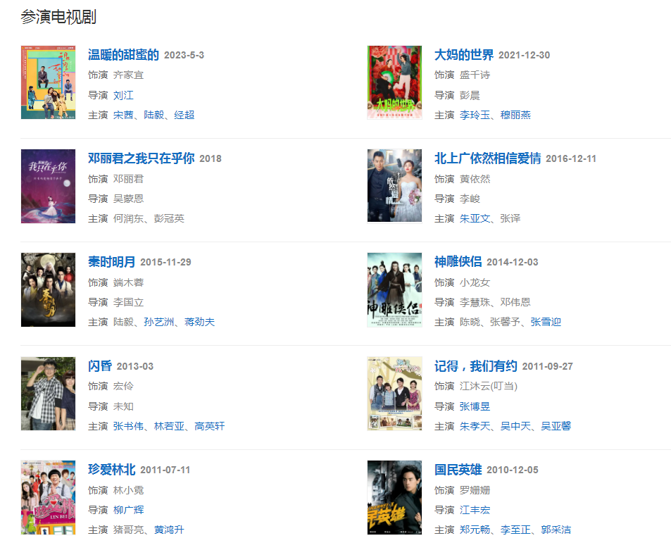2021年1月,參加女性勵(lì)志綜藝節(jié)目《乘風(fēng)破浪的姐姐第二季》、《姐姐解解壓》;2月,參加《姐姐的上班路》;10月,參加全國(guó)首個(gè)“IPTV首播大型綜藝節(jié)目”《她·鄉(xiāng)-風(fēng)一樣的女子》;12月30日,特別出演的短劇《大媽的世界》播出。