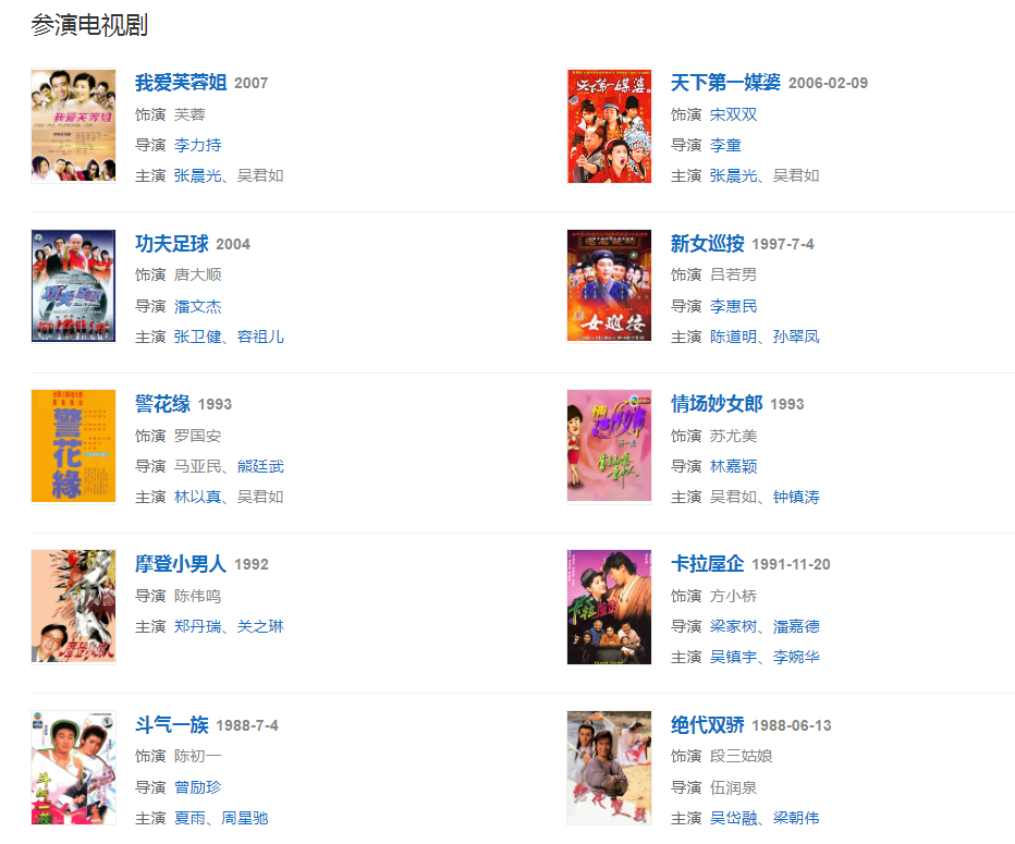 代表作品:我有我的溫柔、家有喜事、賭圣、四面夏娃、古惑仔情義篇之洪興十三妹、功夫足球、金雞、歲月神偷、妖鈴鈴