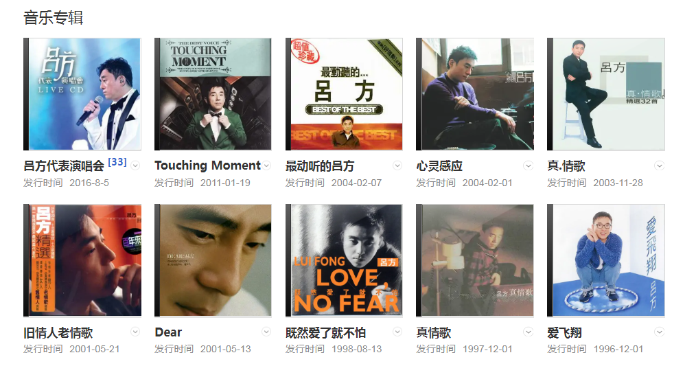 1995年,呂方發(fā)行專(zhuān)輯《愛(ài)一回傷一回》,專(zhuān)輯中的一首質(zhì)樸感人的抒情歌曲《朋友別哭》,唱遍兩岸三地?!杜笥褎e哭》亦是當(dāng)年臺(tái)灣電視連續(xù)劇《情濃半生緣》的片頭曲。