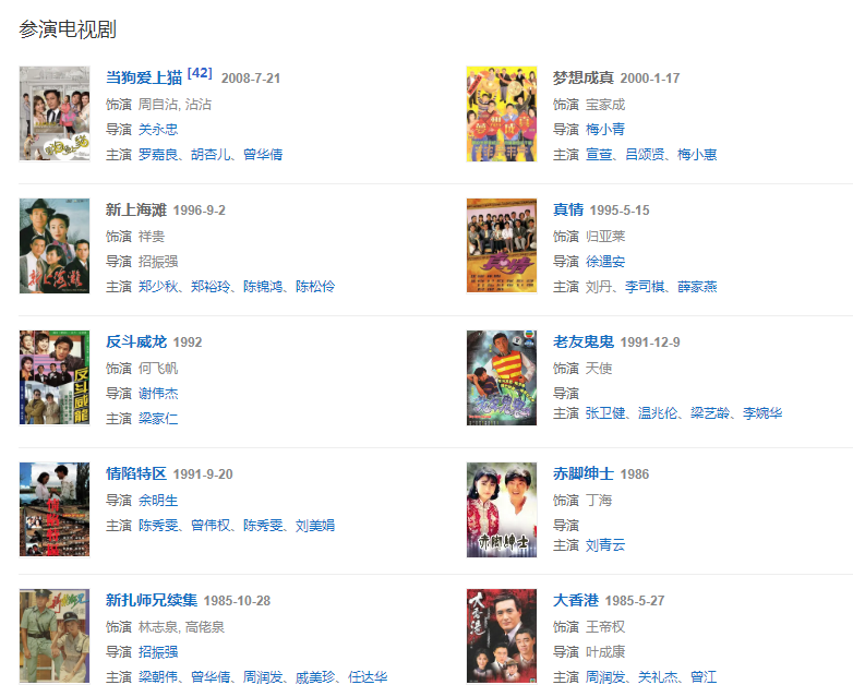 1996年,參演招隅棟執(zhí)導(dǎo)的電視劇《新上海灘》,飾演祥貴。