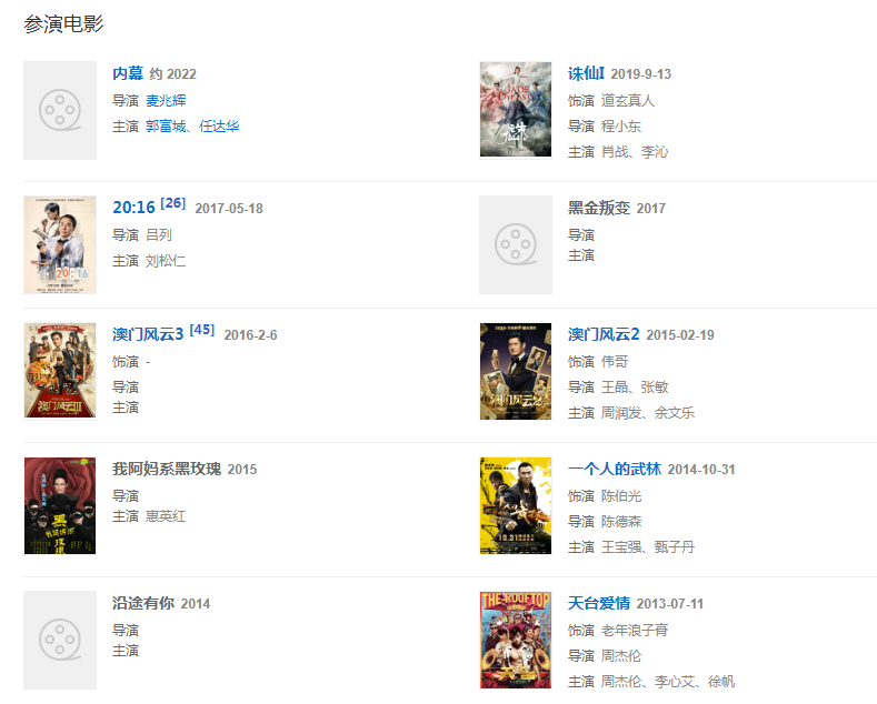 職 業(yè):演員、導(dǎo)演、武術(shù)指導(dǎo)、編劇