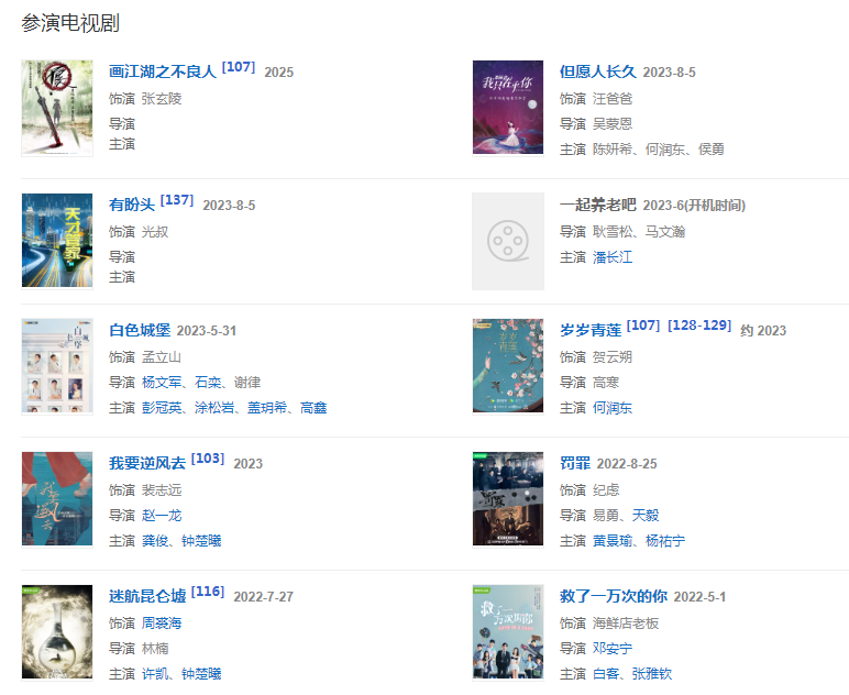 代表作品:情義無價、京城四少、日正當中、明宮謎案、大當家、那年花開月正圓、西虹市首富、都挺好、辣媽正傳